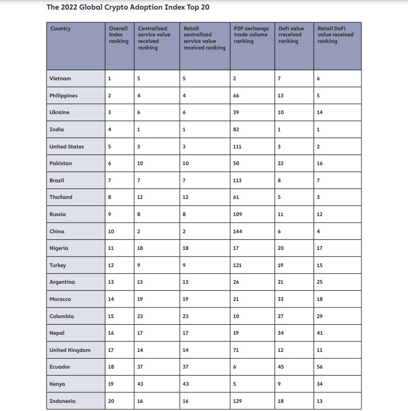 According to Kim Grauer, Director of research at Chainalysis, this year’s index doesn’t demonstrate substantial changes from 2021, but conveys the different ways people are using cryptocurrency.