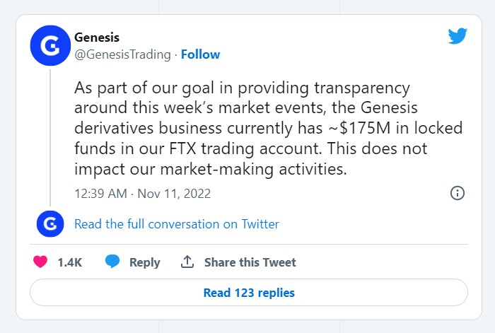The 3rd largest unnamed creditor is listed in the filing as being owed $174 million. While unconfirmed, the figure aligns with what cryptocurrency lender Genesis disclosed 10 days ago: that it had $175 million of funds locked in its FTX trading account.