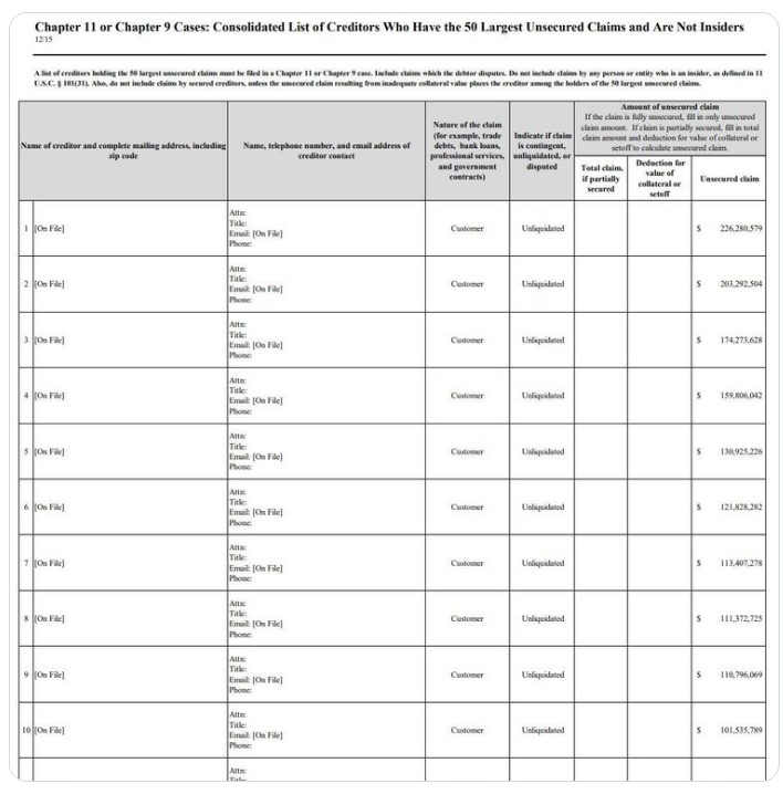“The Top 50 List is based on the Debtors’ currently available creditor information, including customer information that was able to be viewed but is not otherwise accessible at this time. The Debtors’ investigation continues regarding amounts listed, including payments that may have been made but are not yet reflected on the Debtors’ books and records. The Debtors are also working to obtain full access to customer data.”