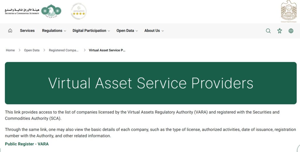 Bybit’s new status was also reflected on the SCA’s public registry. The desktop version of the registry currently directs users to VARA’s list of licensed companies, while on mobile, Bybit appears listed as an active Virtual Asset Platform Operator under SCA.