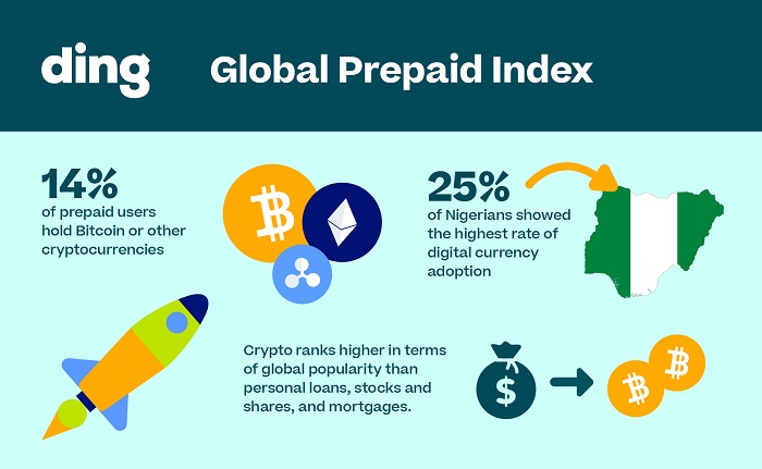 Ding, a leading international mobile top-up service, has released its second Global Prepaid Index, revealing that 14% of users hold Bitcoin or other cryptocurrencies. The survey found that 10 percent of those who respondents in KSA hold crypto. Adoption is even as high as 25% in some developing countries. The report also shows that many consumers are putting digital assets ahead of other, more traditional financial products, such as personal loans.