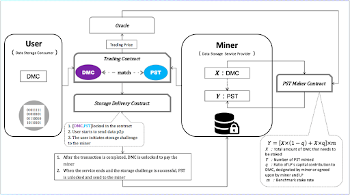 DMC provides a platform for storage matchmaking transactions on the chain. Miners offer their storage space and pledge tokens, which are used to ensure the security and persistence of data, providing guarantees for storage transactions. Moreover, users purchase miner storage space with DMC tokens through the chain and store their data.