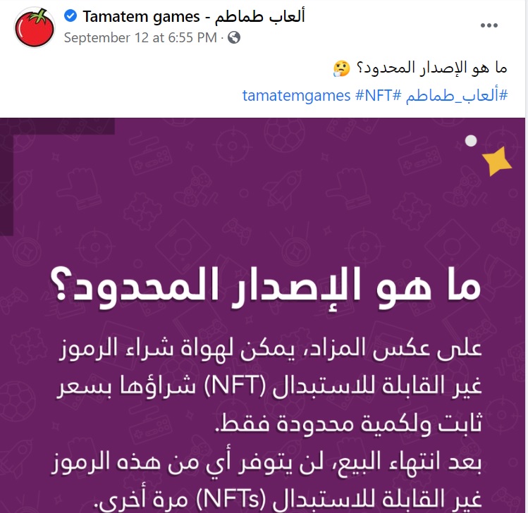 The announcement comes after a series of Facebook posts on Tamatem explaining NFTs, and Ethereum Blockchain.