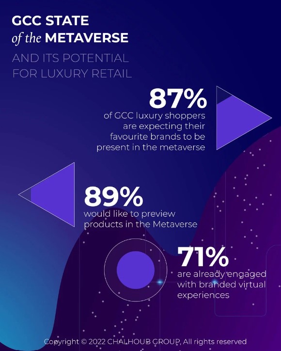 According to Arab News, luxury consumers want to engage in metaverse experiences, with 89 percent saying they would like to preview products in the metaverse and 87 percent saying they expect their favorite brands to be present in the metaverse.