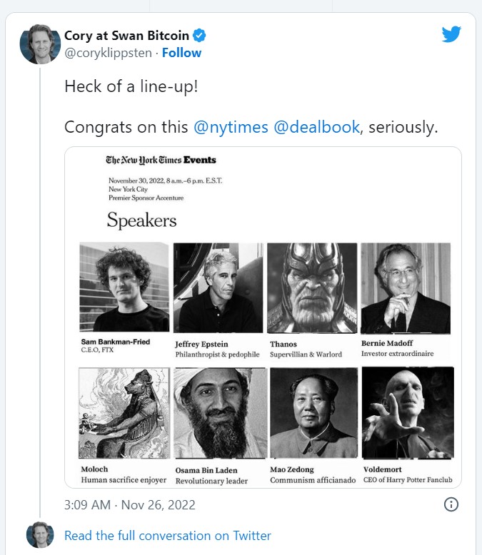 Cory at Swan Bitcoin tweeted the following too: