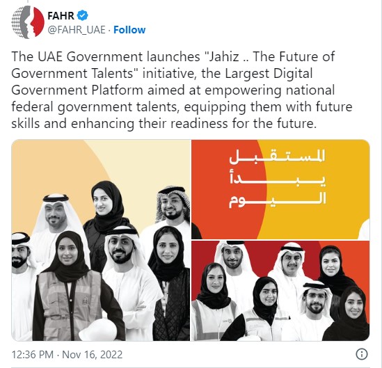 The UAE government launched "Jahiz”, an upskilling initiative for the future of government talents, which was recently endorsed by the UAE Cabinet headed by His Highness Sheikh Mohammed bin Rashid Al Maktoum, Vice President and Prime Minister of the UAE and Ruler of Dubai.