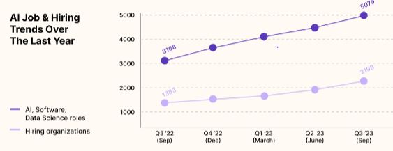 With more than 2,100 organizations participating in this hiring wave, the pace of growth has exceeded expectations, painting a compelling narrative of AI's ascent in the job market.
