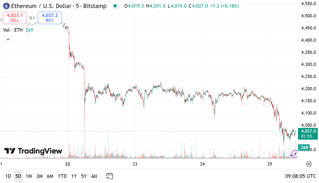 This week, ETH tumbled below $4,000, dragging other crypto assets downward amid rising fear of a U.S. government shutdown.